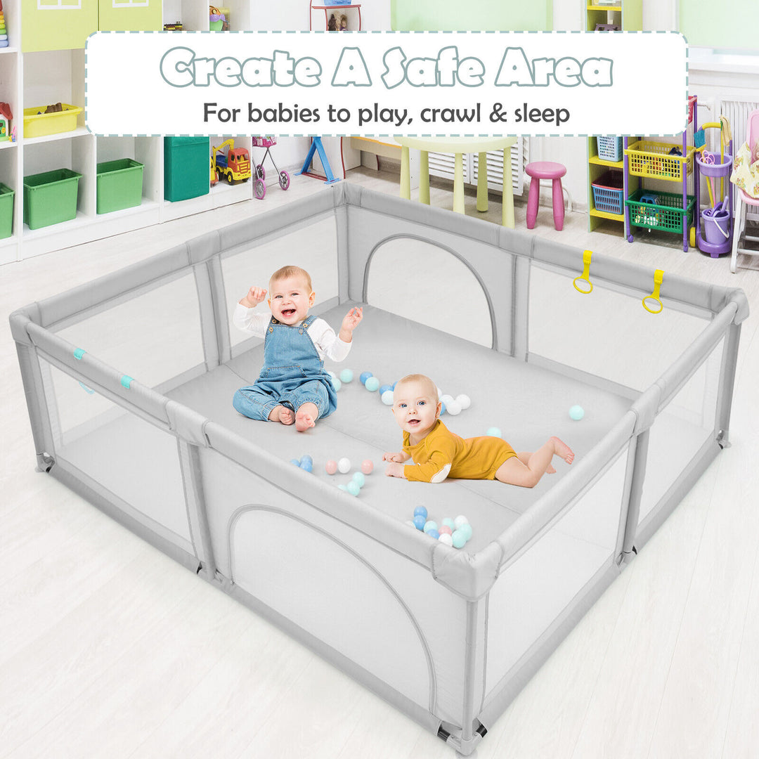 Large Infant Baby Playpen Safety Play Center Yard with 50 Ocean Balls-Gray