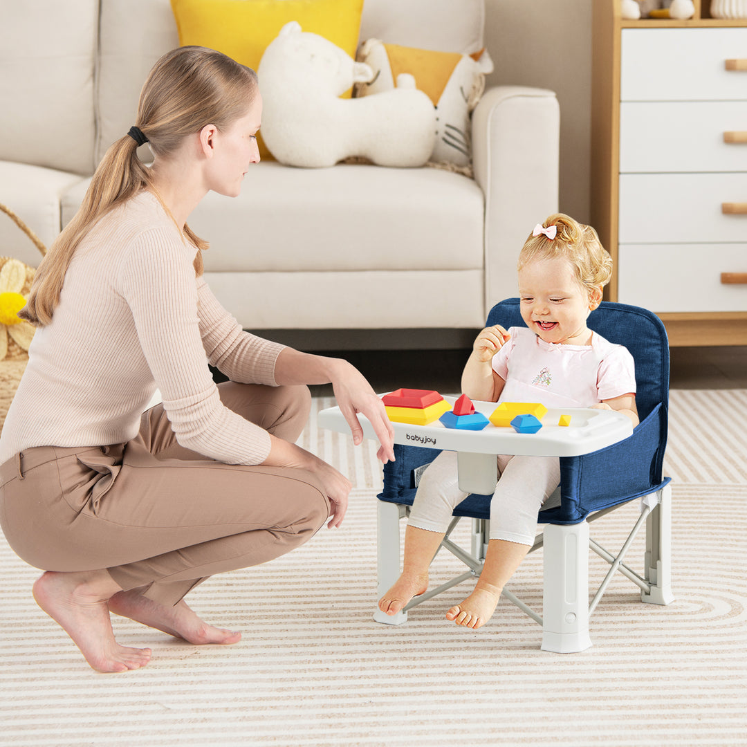 Portable Baby Booster Seat with Straps and Double Tray-Blue