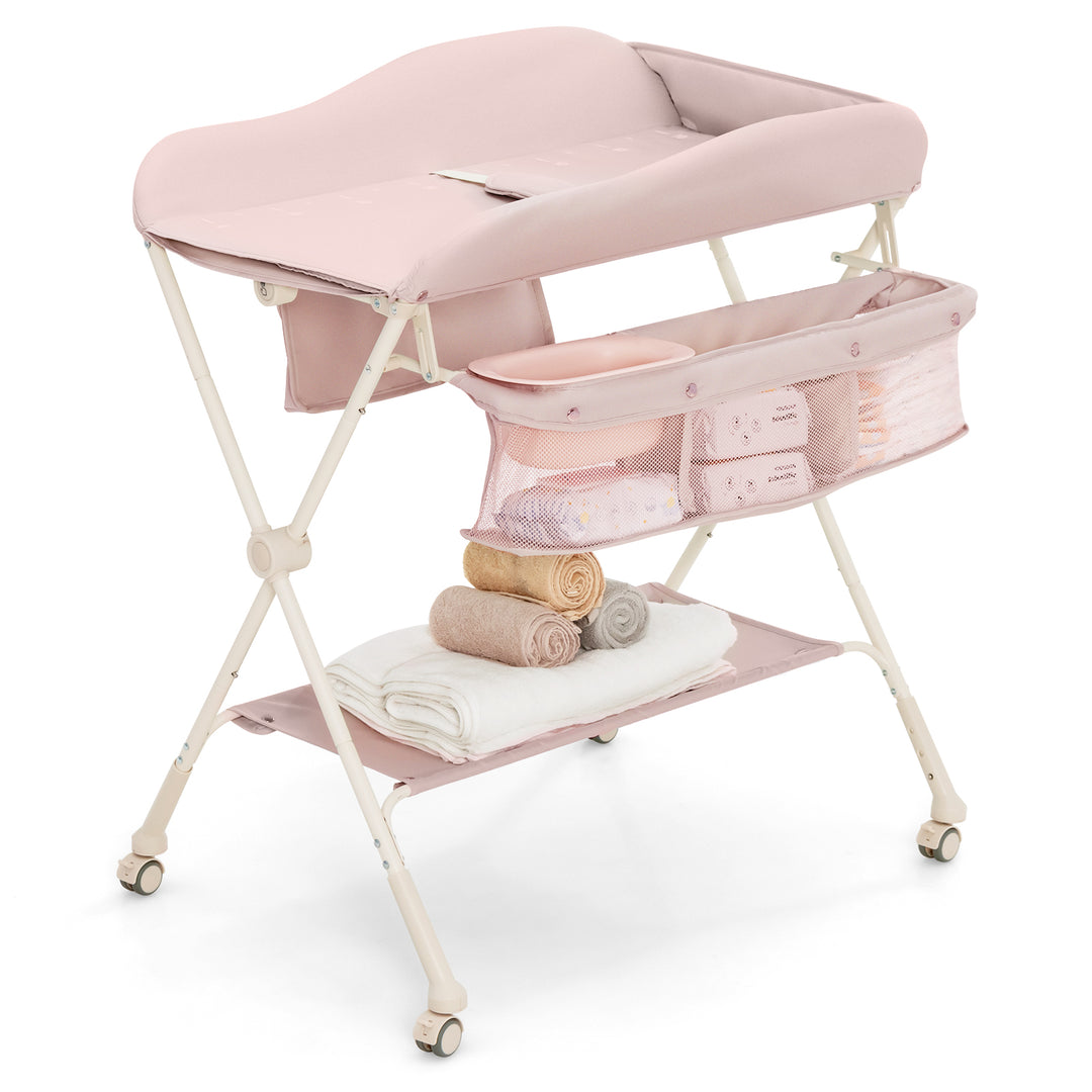 Baby Diaper Changing Table with Water Basin Wheel-Pink