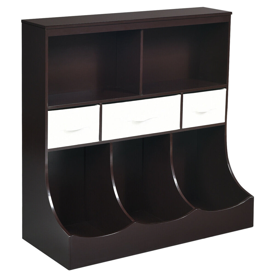 Freestanding Combo Cubby Bin Storage Organizer Unit W/3 Baskets-Brown