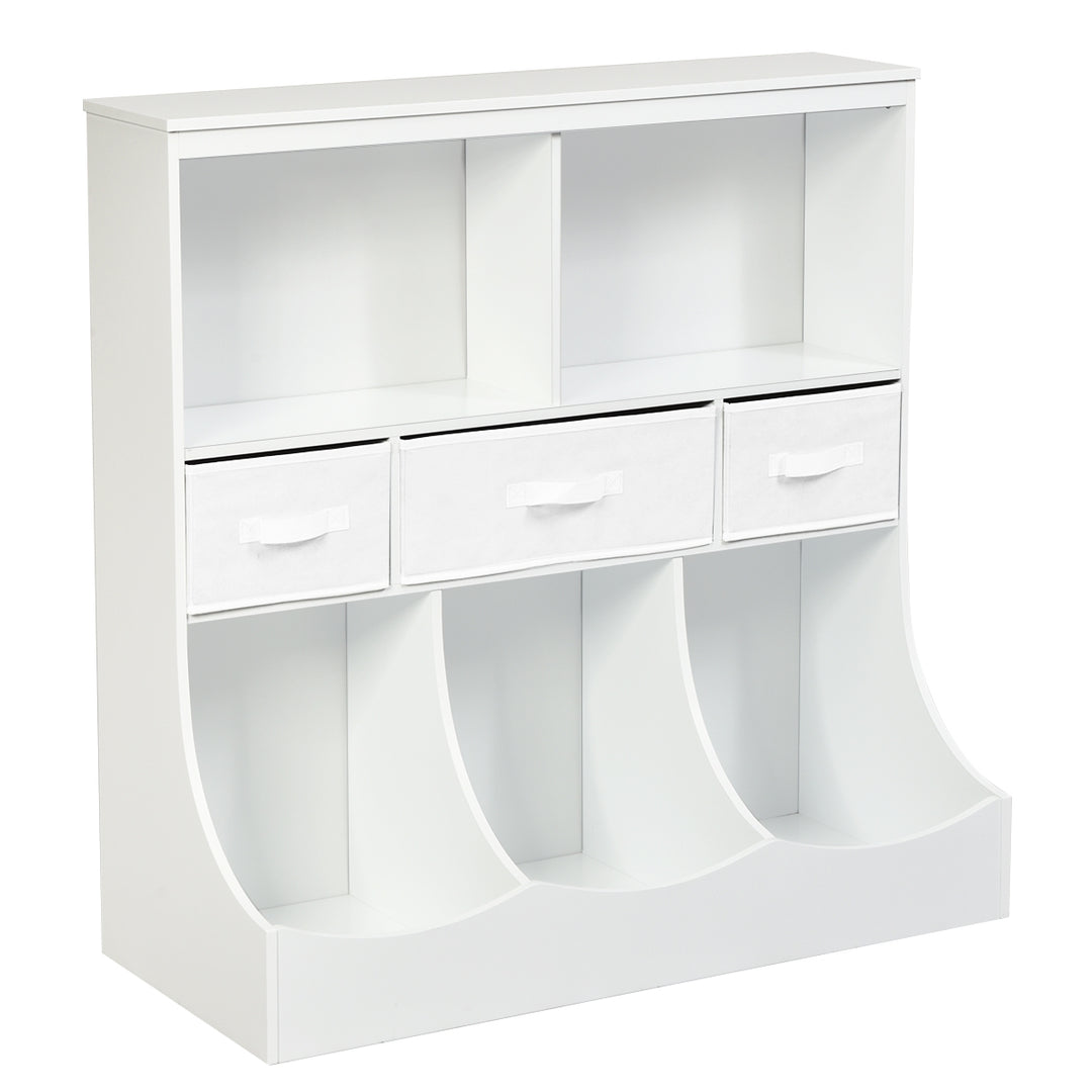 Freestanding Combo Cubby Bin Storage Organizer Unit W/3 Baskets-White