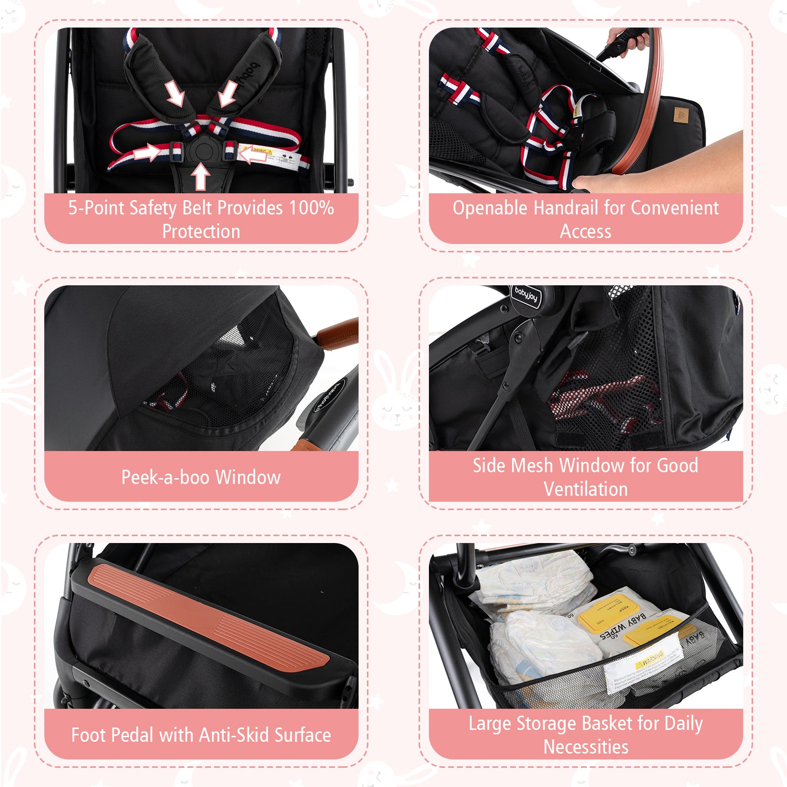 Lightweight Aluminium Frame Baby Stroller with Net-Black