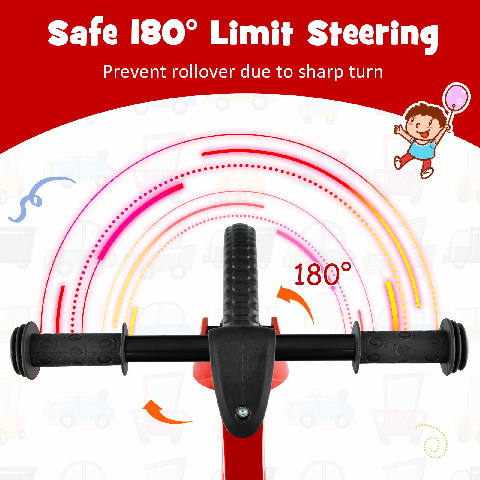 ● 180° limited steering for secure use● Anti-skid handlebar for a cozy and firm grip● Adjustable seat height for kids of different heights● Soft and comfortable seat for ultimate coziness● High quality EVA-foam wheels for smooth riding● Ultra lightweight design for effortless movement● Integrated handle for simple carrying and hanging● Built-in footrests for upgraded comfort● ASTM certification for more reliability● Suitable for kids to practice balance and steering