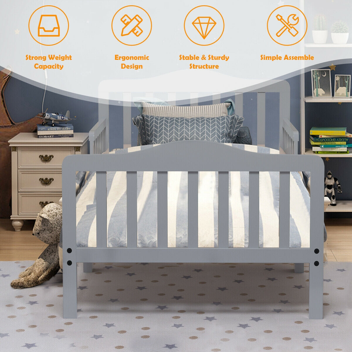 Classic Design Kids Wood Toddler Bed Frame with Two Side Safety Guardrailss-Gray