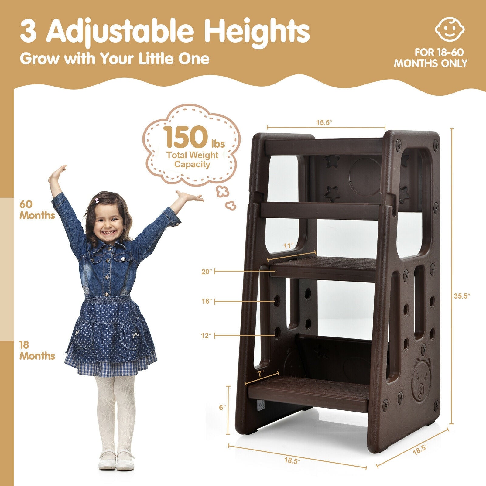 Kids Kitchen Step Stool with Double Safety Rails -Brown