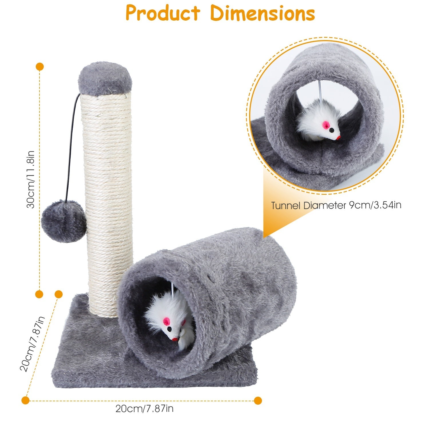 Cat Scratching Post Cat Kitten Sisal Scratch Post Toy w/ Tunnel & Lifelike Mouse Toy Pet Activity Play Fun