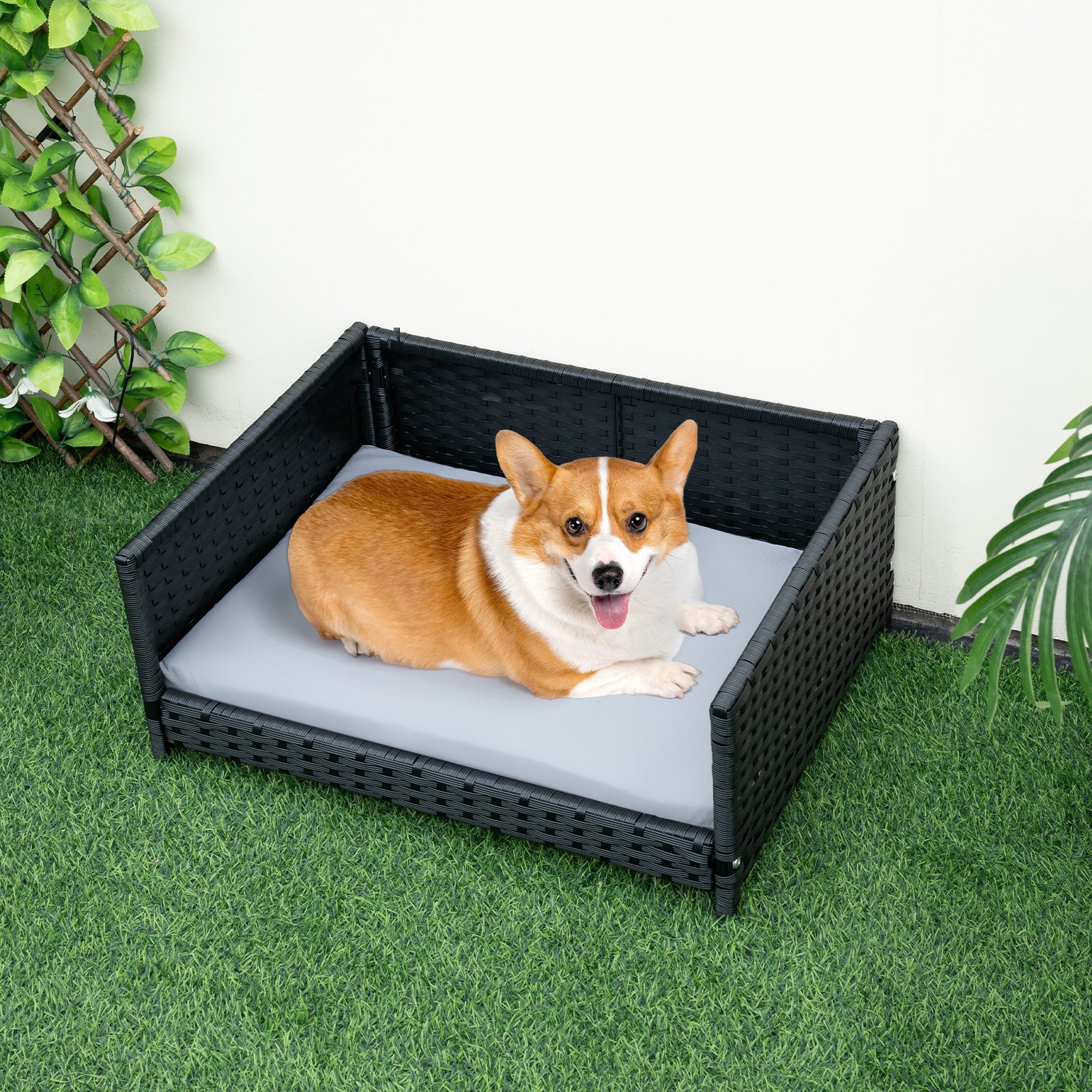Rattan Dog Bed with Waterproof Soft Cushion for Medium Small Dogs Cats-Gray