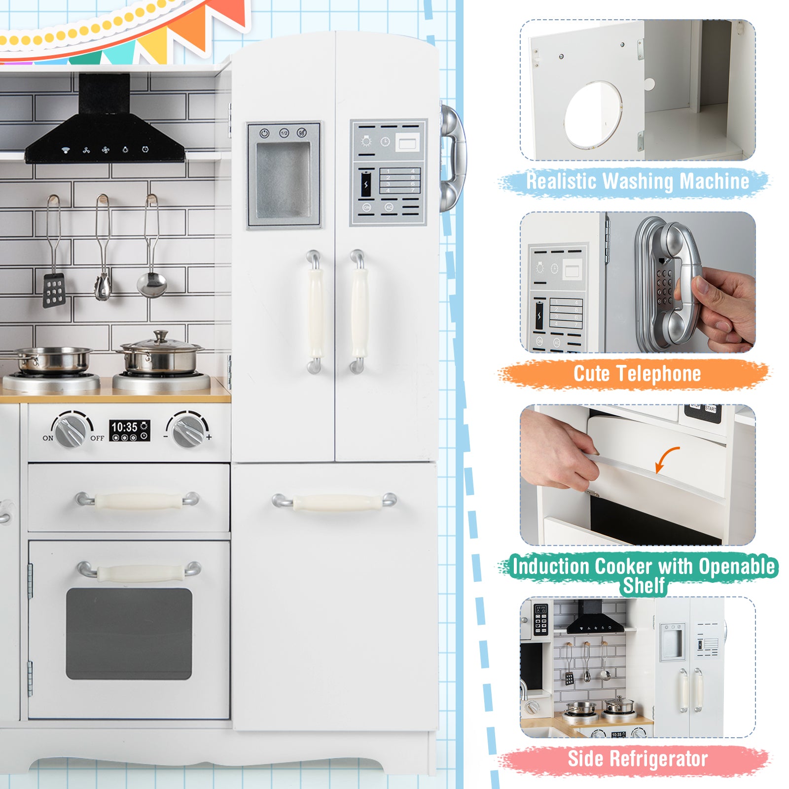 Wooden Kid's Corner Kitchen Playset with Stove for Toddlers-Natural & White
