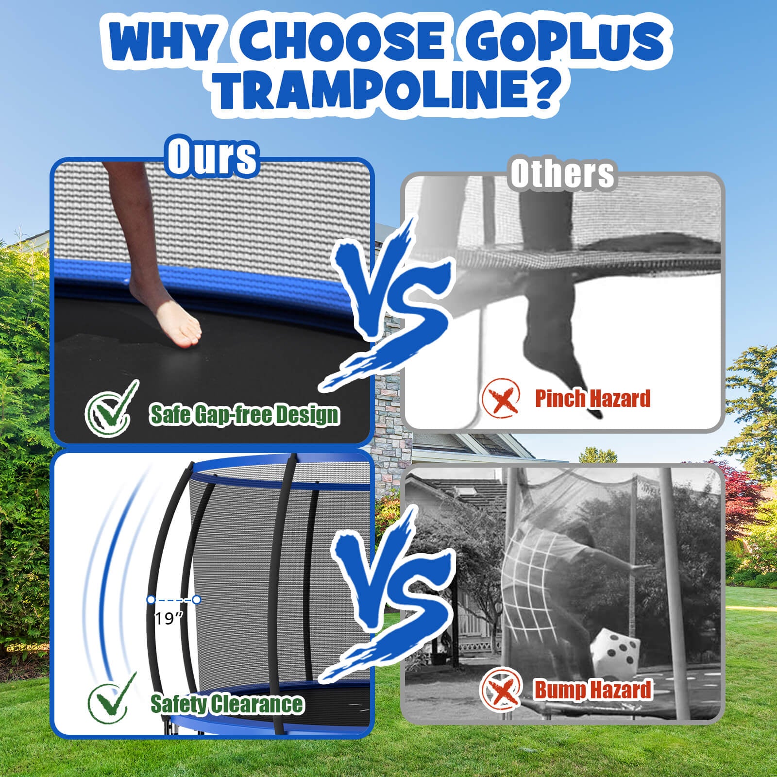 ● The whole set will be delivered in 3 (12FT) boxes● Easy to assemble with included instructions and tools● ASTM certified to ensure reliable safety and durability● Complete safety protection with enclosure net and safety pad● Designed with curved net poles to prevent getting injured● Built with 3 (10FT/12FT) w-shaped legs to ensure better stability● Better bouncing with premium PP jumping mat and strong steel springs● Made of rustproof galvanized steel frame and paint coated leg tubes● Capable of long time outdoor use with UV-resistant jumping mat● Holds up to 400 lbs suitable for both kids and adults