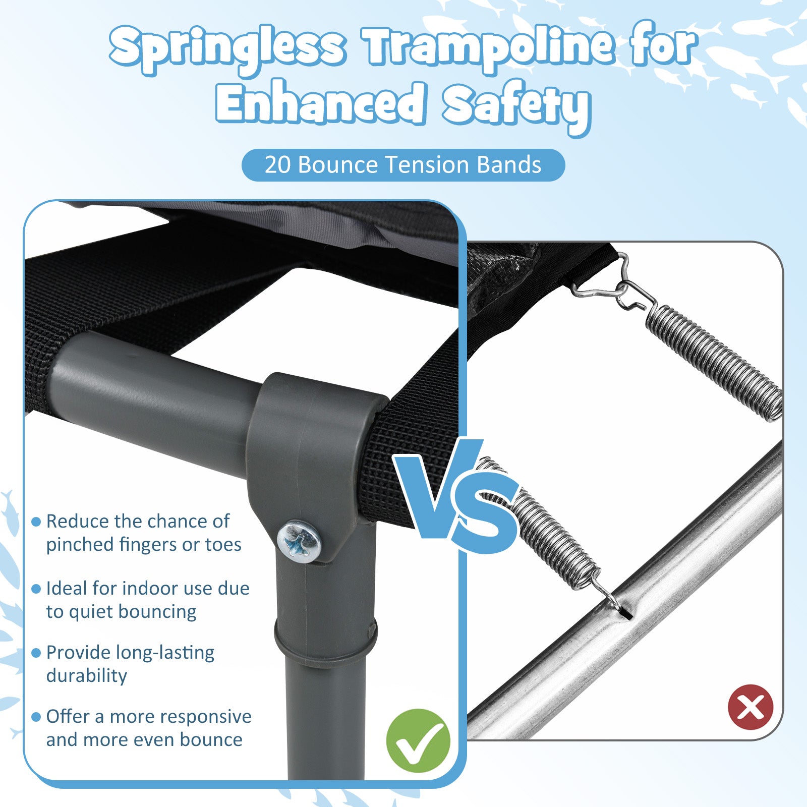 ● Compact and foldable for small spaces● Extra fun with LED lights around the jumping mat● Springless design for enhanced safety● Features a high-resilient and anti-skid jumping mat● Comes with an attractive padded safety cover● Equipped with a foam handrail and anti-slip foot pads● Constructed with a sturdy metal frame● Encourages active play instead of watching TV and more● Easy assembly and disassembly with push-in legs
